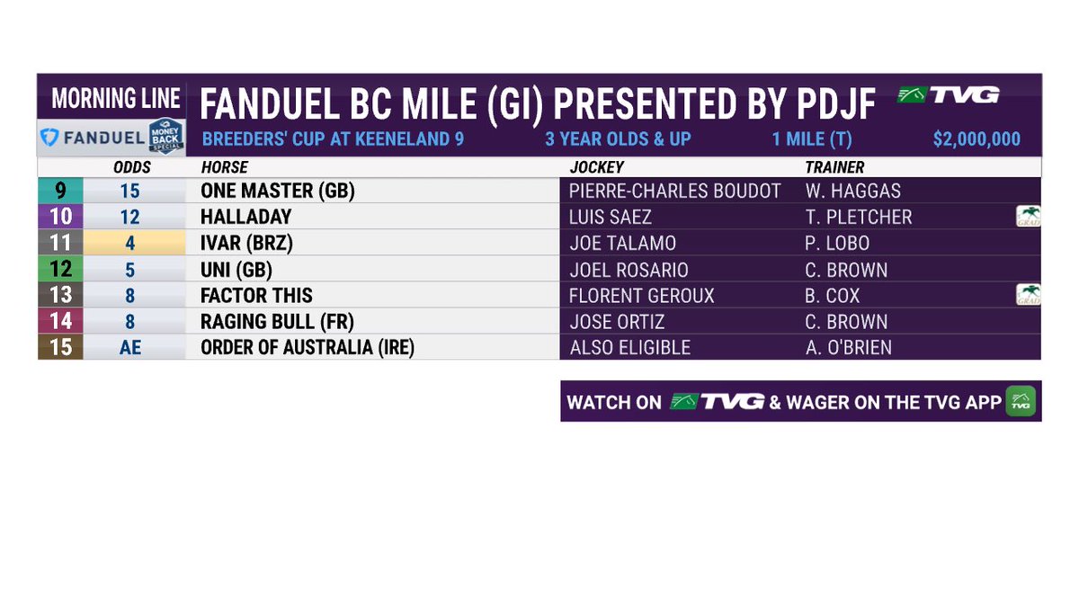 Kevin Grigsby Great Betting Race Fanduel Breederscup Mile Full Field Live On Nbcsports I M Going With 12 Uni For Therealchadcbr1 Hoping My Win Bet Pays For My Sushi Dinner